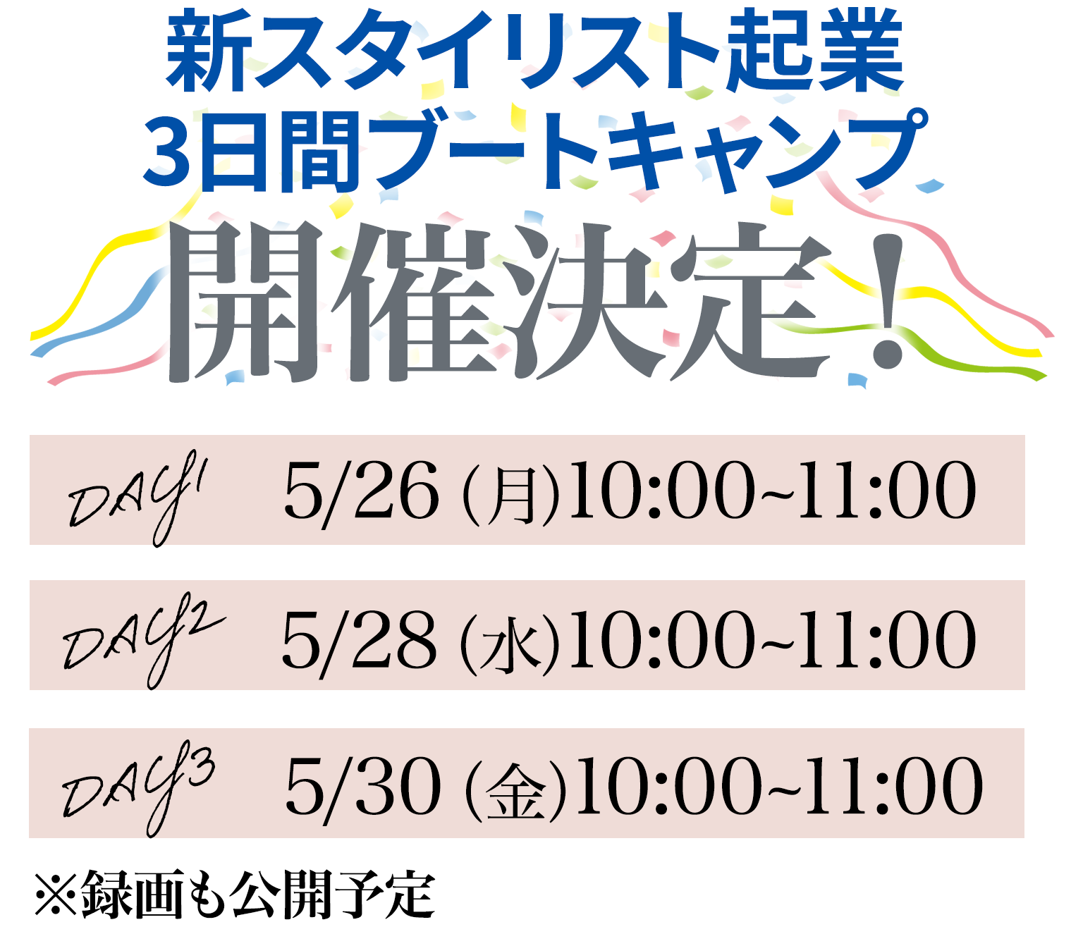 約1時間のセミナーを3日間開催します。